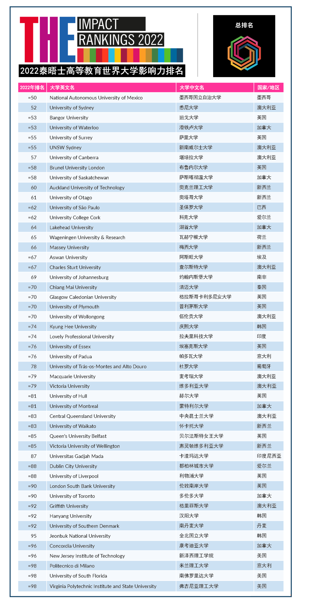 今早,泰晤士高等教育刚刚公布了 2022年世界大学影响力排名结果。今年共评估了110个国家和地区的1524所大学,相比去年增加了23%。值得高兴的是,在进入总排名的1406所大学中,澳大利亚西悉尼大学一举夺冠,荣获总排名榜首。