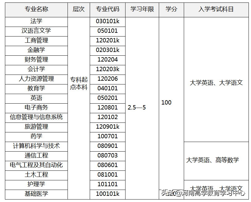 (1)凡具有国民教育系列本科及以上学历者,可免试参加专科起点本科学习;