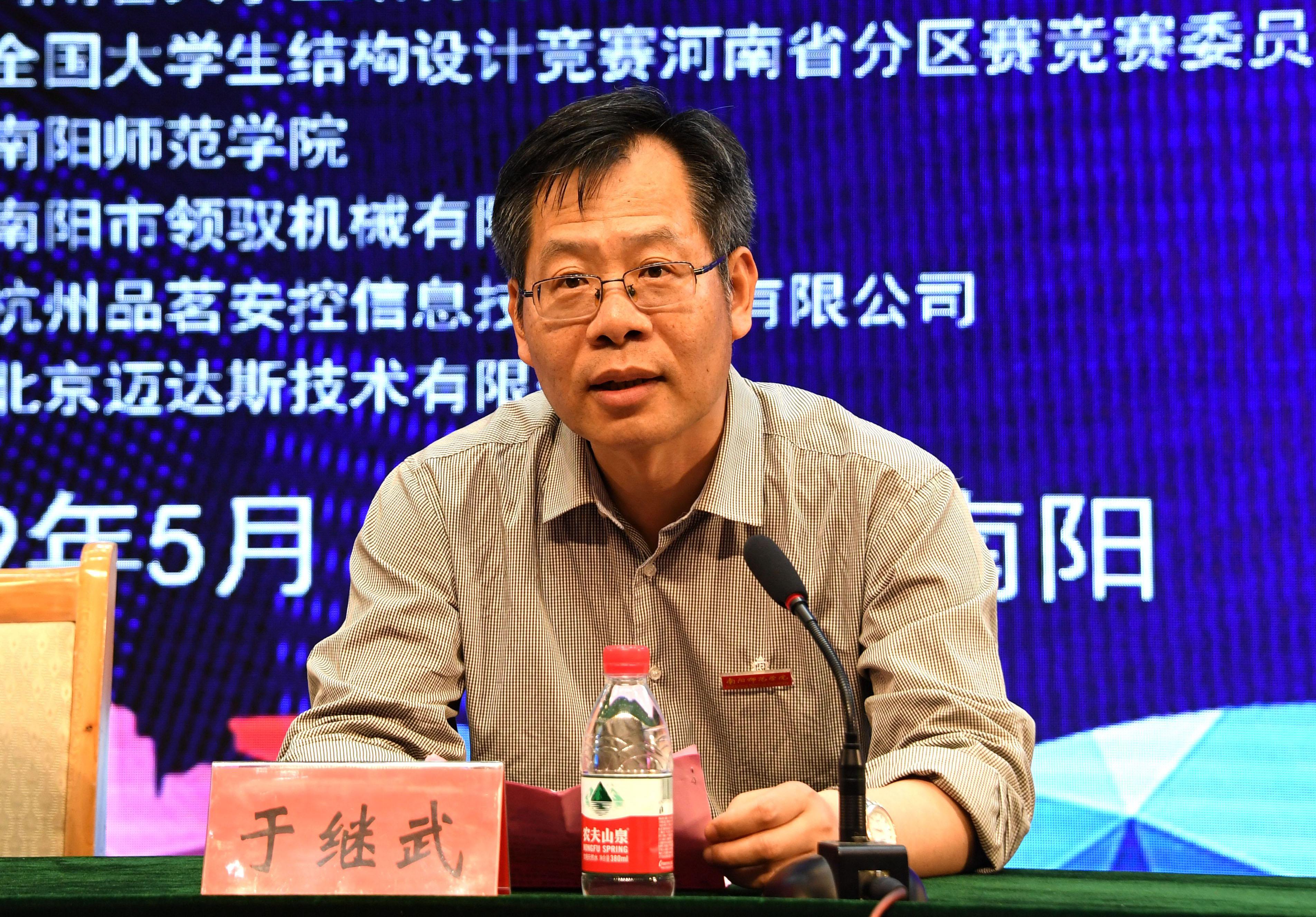 于继武致辞。他首先代表南阳师范学院全体师生对各位领导、参赛老师和选手的到来表示热烈欢迎,并向各位领导和来宾简要介绍了学校办学历史、学校概况以及近几年所取得的成绩。随后,他对本次大赛筹备情况进行说明并衷心祝愿各参赛队伍全力以赴,赛出水平,赛出风格,赛出友谊,赛出好成绩。