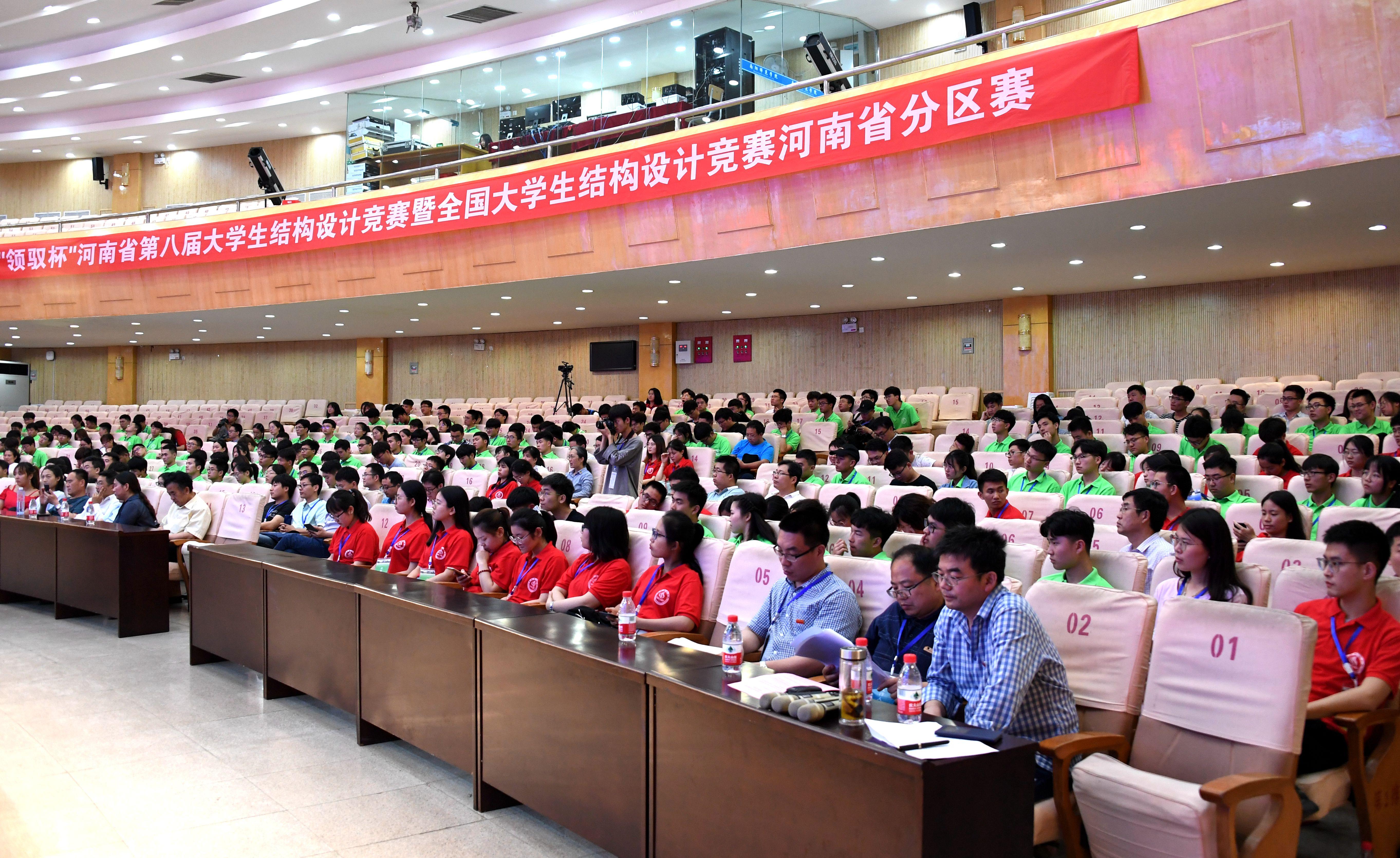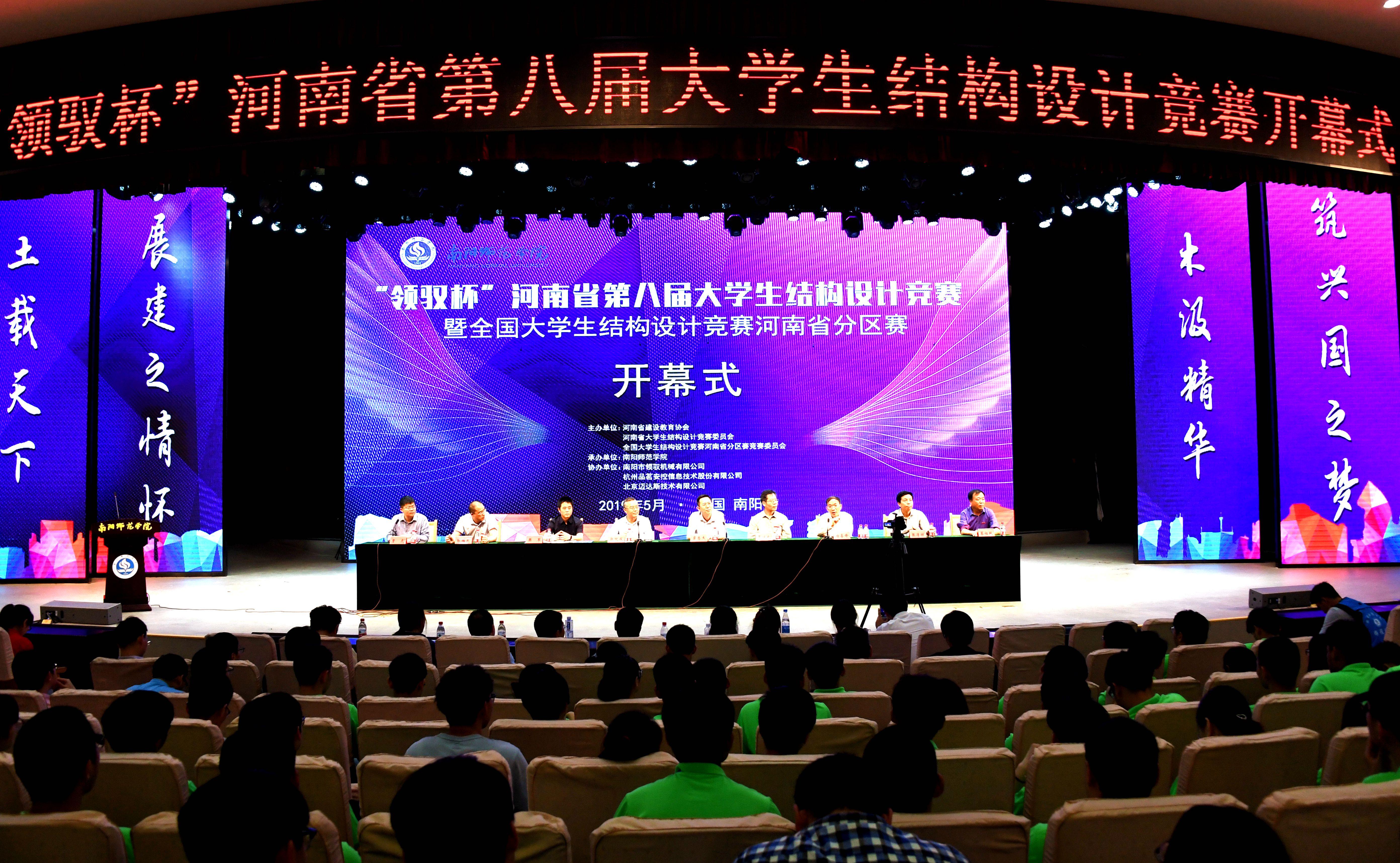 5月17日,“领驭杯”河南省第八届大学生结构设计竞赛暨全国大学生结构设计竞赛河南省分区赛开幕式在南阳师范学院音乐厅举行。南阳师范学院纪委书记于继武出席大赛开幕式并致欢迎辞。河南省建设教育协会会长崔恩杰、南阳市领驭机械有限公司董事长杨喜锋、河南省建设教育协会秘书长樊军、郑州大学土木工程学院院长郭院成、南阳师范学院团委书记张潍杰、南阳师范学院教务处副处长张清祥、南阳师范学院土木建筑工程学院党委书记蔡祖敏、南阳师范学院土木建筑工程学院院长贾虎以及来自全省34所高校的指导老师和参赛选手参加开幕式。开幕式由南阳师范学院土木建筑工程学院院长贾虎主持。