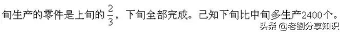%,下旬生产了50%。还可以看出下旬比中旬多生产30%,这30%正好是2400个。所以,一月份生产的零件个数是: