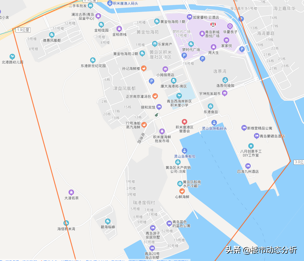 积米崖片区的津盘凤凰都、德惠凤凰都、瑞港度假村、积米崖社区、康大海港苑、怡景湾、碧海临峰、金柏佳园。