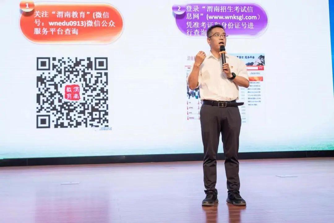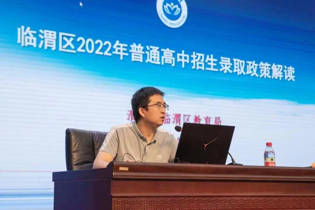 开放日活动分上下午两个场次,上午九时整,大家集聚学校宣化堂,参加由临渭区教育局电化教育中心副主任郭栋梁主讲的“临渭区2022年普通高中招生录取政策解读”报告会。报告会由瑞泉中学常务副校长王日强主持。