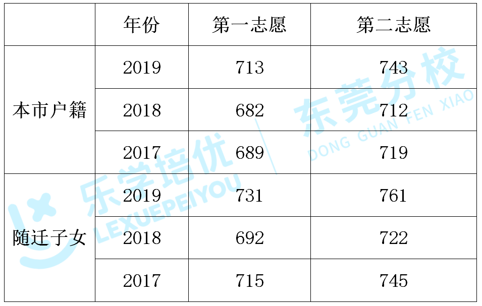 一中的录取分数在东莞五大校中仅次于莞中和松山湖,并且一中的报考人数逐年增多,分数线每年都在升高(2018年中考难度偏大,东莞市考生整体分数均较低)。