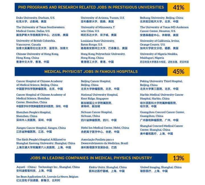 而一些毕业生进入行业并找到了很好的机会,例如Elekta,United Imaging Healthcare和Ion Beam Applications,还有一些毕业生则会在学术机构担任讲师或研究助理。