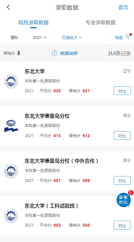 还可以点击筛选,按所在地区、院校类型、办学性质、实力标签、按分数、按位次、按线差进行查询。