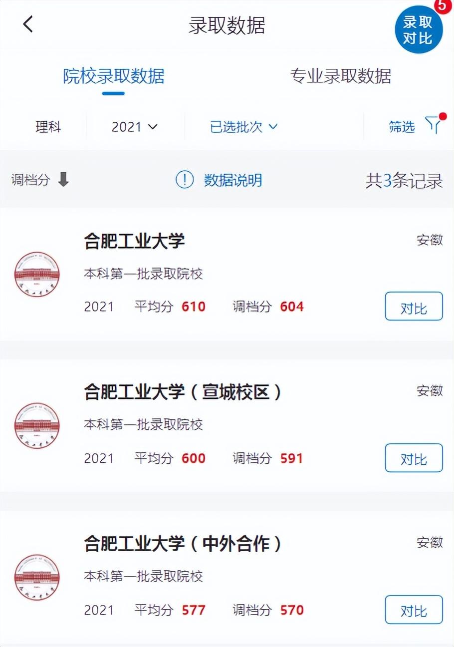 2021年合肥工业大学及分校区在川录取情况(理科)