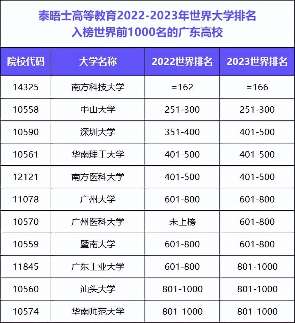 昨日,泰晤士高等教育公布2023年世界大学排名,广东高校表现亮眼。
