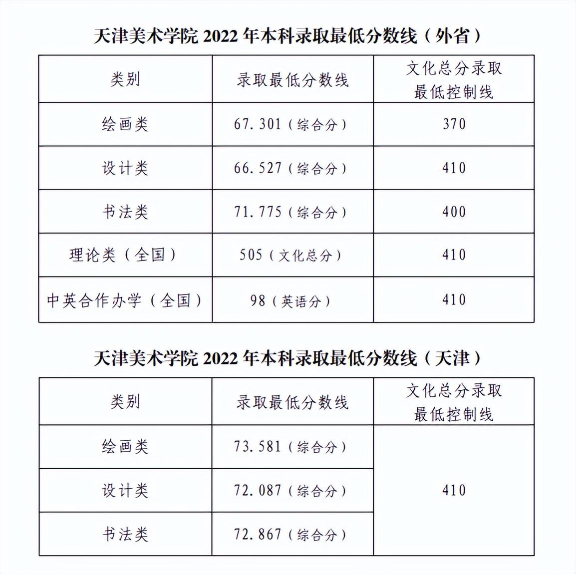 美术学类:获发我校2022年专业考试合格证的考生,语文、外语达到最低成绩要求,文化课相对成绩不低于80,专业课成绩北京不低于520、其他省不低于527.5分(专业课成绩并列527.5分的,文化课相对成绩不低于88.34)可予录取。以上录取北京生源8人,其他省生源47人。