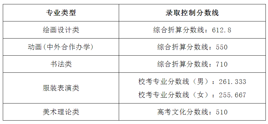 湖北美术学院2022年普通本科招生录取控制分数线(外省)如下: