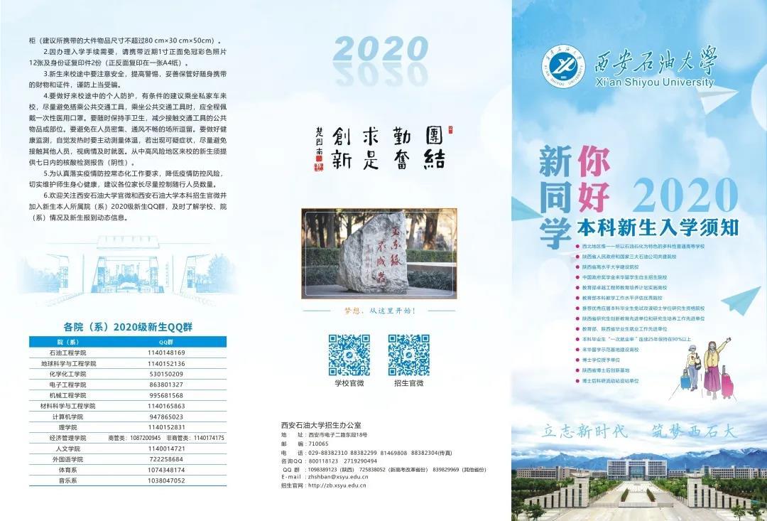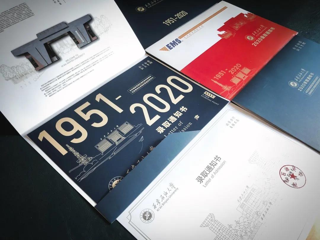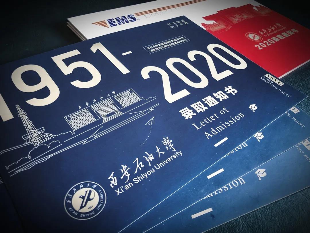 2020级西安石油大学本科新生录取通知书分为三个部分,通知书封套、通知书内页、EMS信封袋。