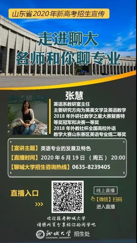 中国教育在线讯 6月19日,聊城大学招生宣传直播来啦!英语专业宣讲即将开播!