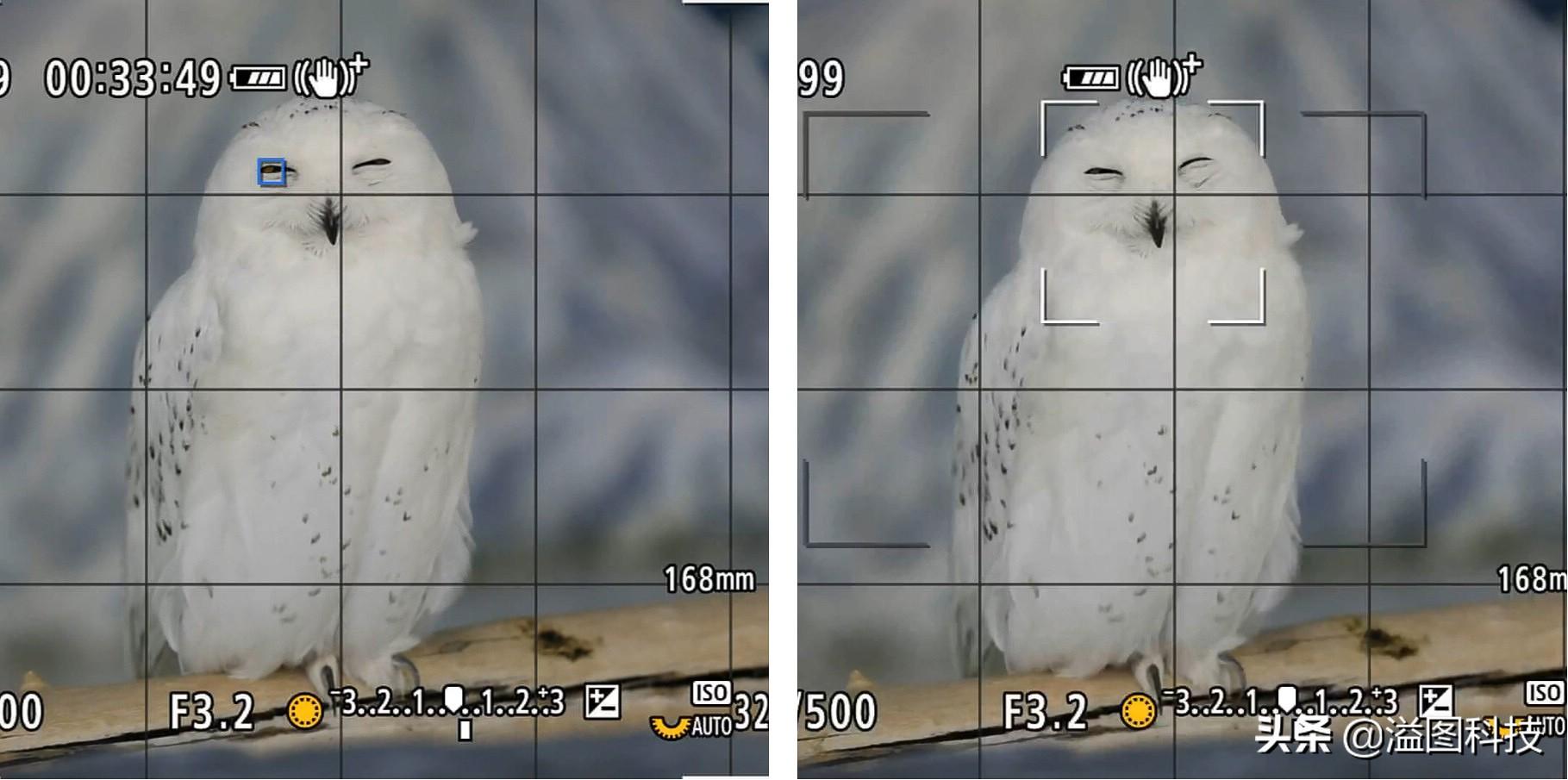 ▲索尼α1在面对雪鸮闭眼之后,鸟眼检测就停止工作了。
