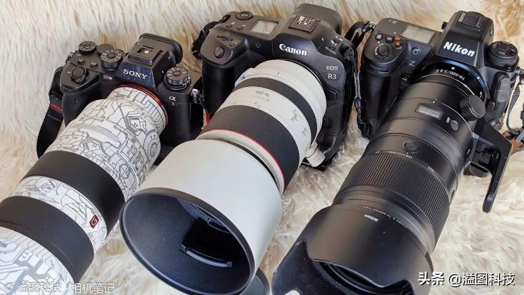 ▲索尼α1、佳能EOS R3、尼康Z 9及原厂原生卡口70-200/2.8镜头