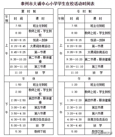 夏时制下午:一年级4:10,二年级4:20,三五年级5:00,四六年级5:10放学。(星期五下午:一二年级:4:40)