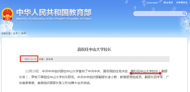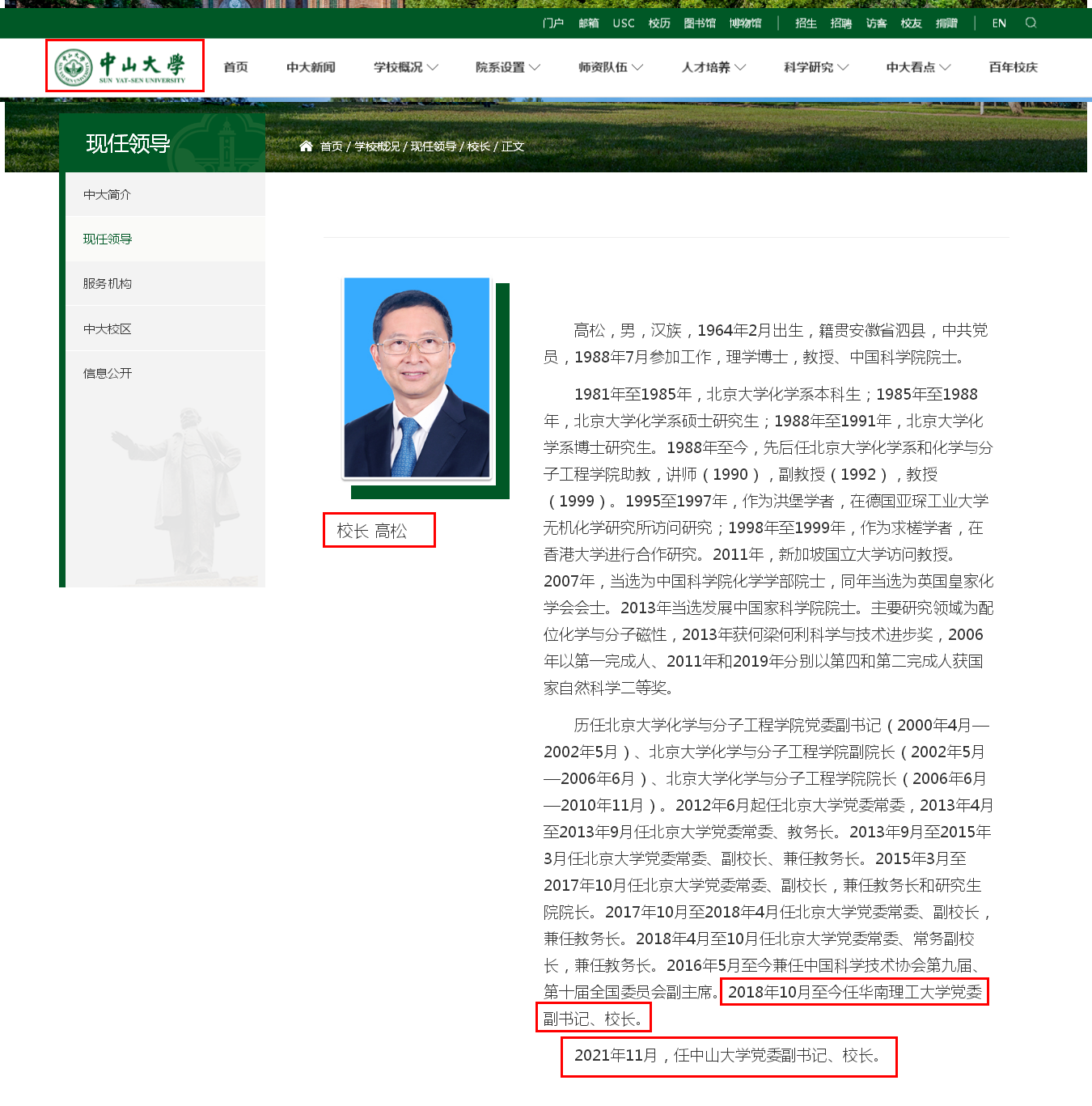这个按照正常的流程,应该先任命高松为中山大学校长,再免去高松的华南理工大学校长,不过目前只有新的任命,却没有免职说明,这样从2021年11月到2022年6月,中山大学和华南理工大学的校长都是高松。