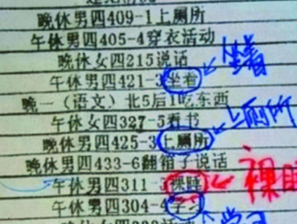 其二是休息的规定,晚上10点必须睡觉,11点30后也不允许上厕所,特殊情况除外,很大程度上保证学生有一定的休息时间。