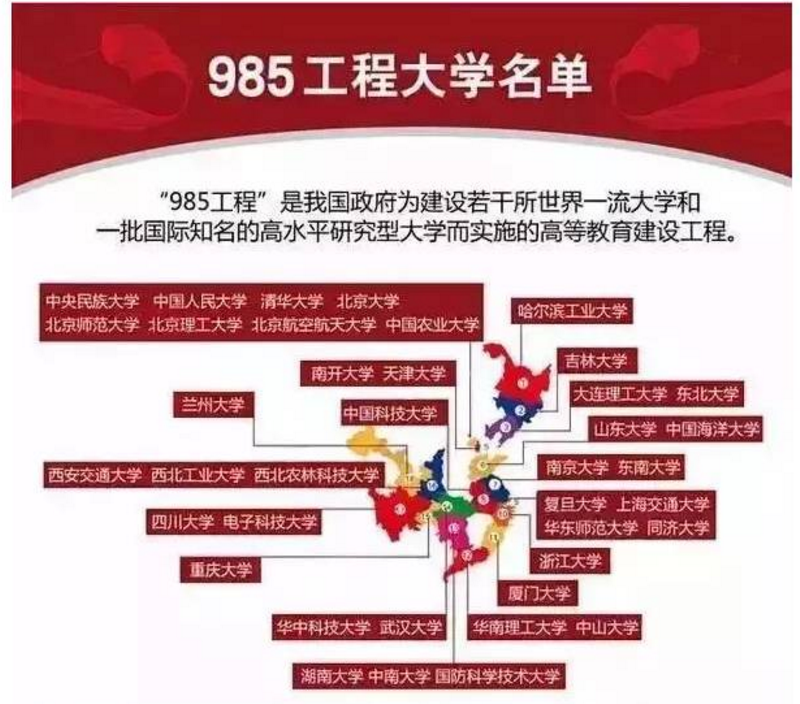 我国在1998年5月4日推出985建设工程高校的概念,有39所高校被赋予了985称号,成为国内最顶尖的高校。