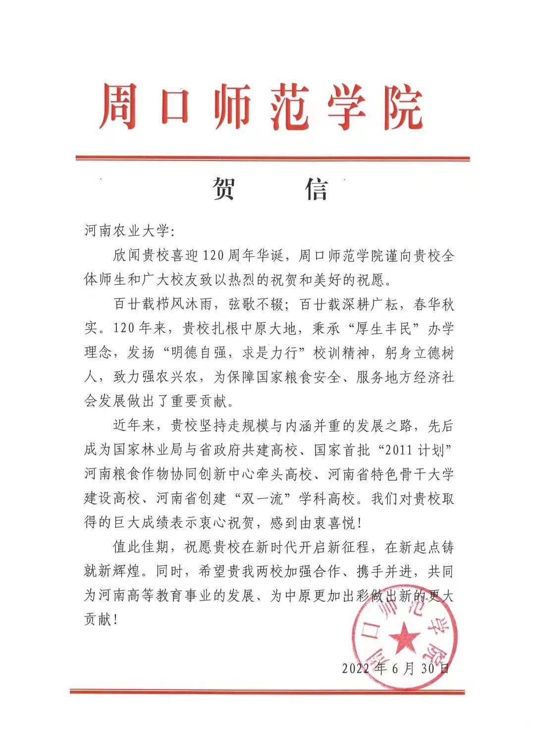 六、周口师范学院 贺信
