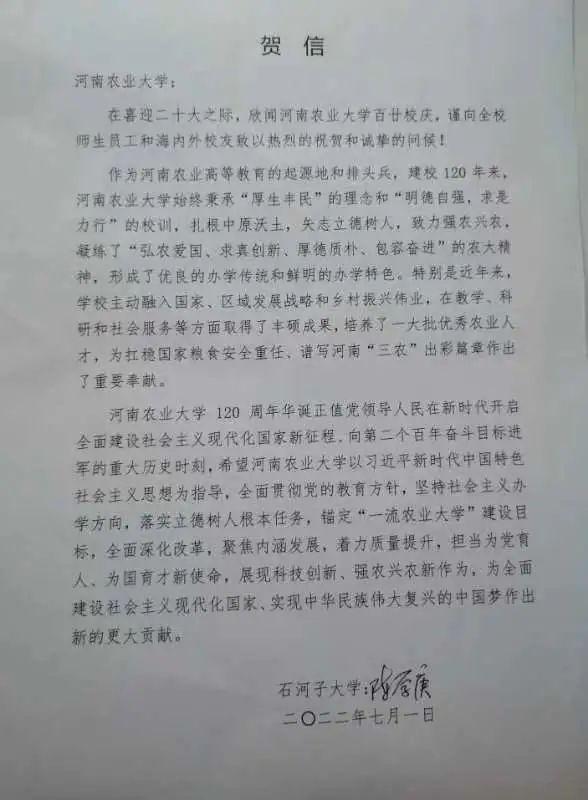 十七、石河子大学 贺信