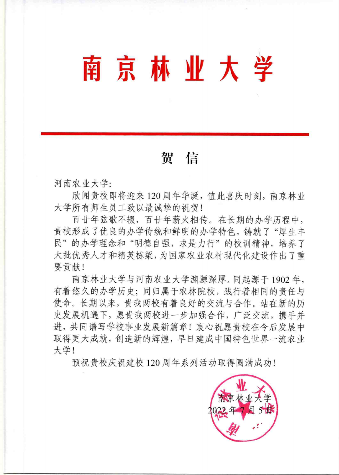 版权声明:我们致力于保护作者版权,注重分享,被刊用文章【东北林业大学校庆(百余封贺信祝河南农业大学120周年华诞)】因无法核实真实出处,未能及时与作者取得联系,或有版权异议的,请联系管理员,我们会立即处理! 部分文章是来自自研大数据AI进行生成,内容摘自(百度百科,百度知道,头条百科,中国民法典,刑法,牛津词典,新华词典,汉语词典,国家院校,科普平台)等数据,内容仅供学习参考,不准确地方联系删除处理!;