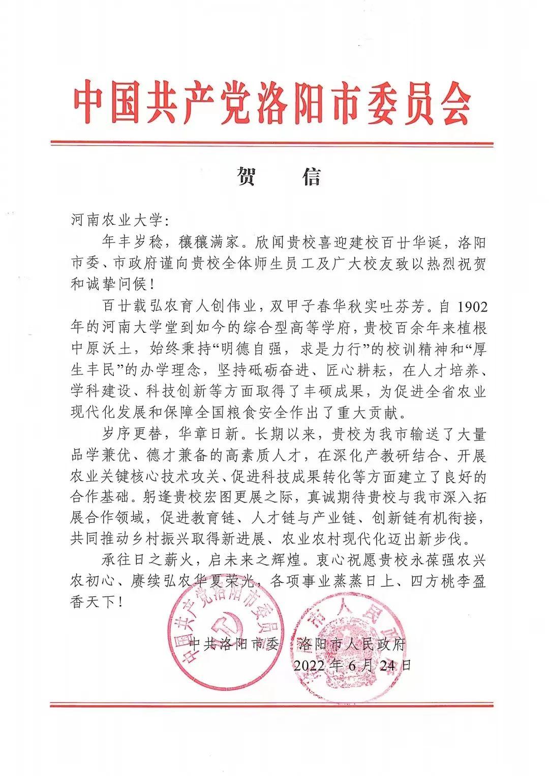 四、洛阳市委市政府 贺信