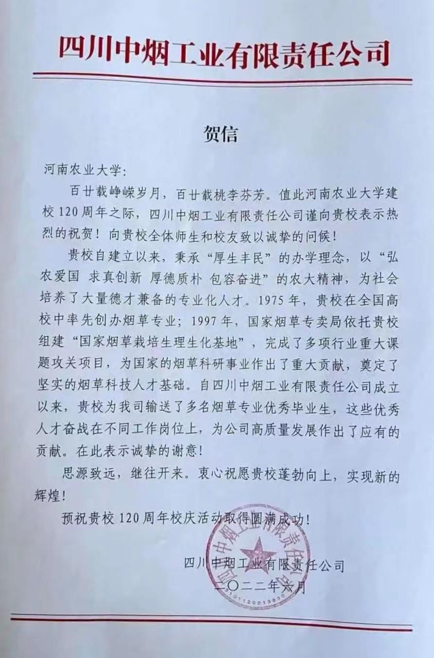 一、四川中烟 贺信