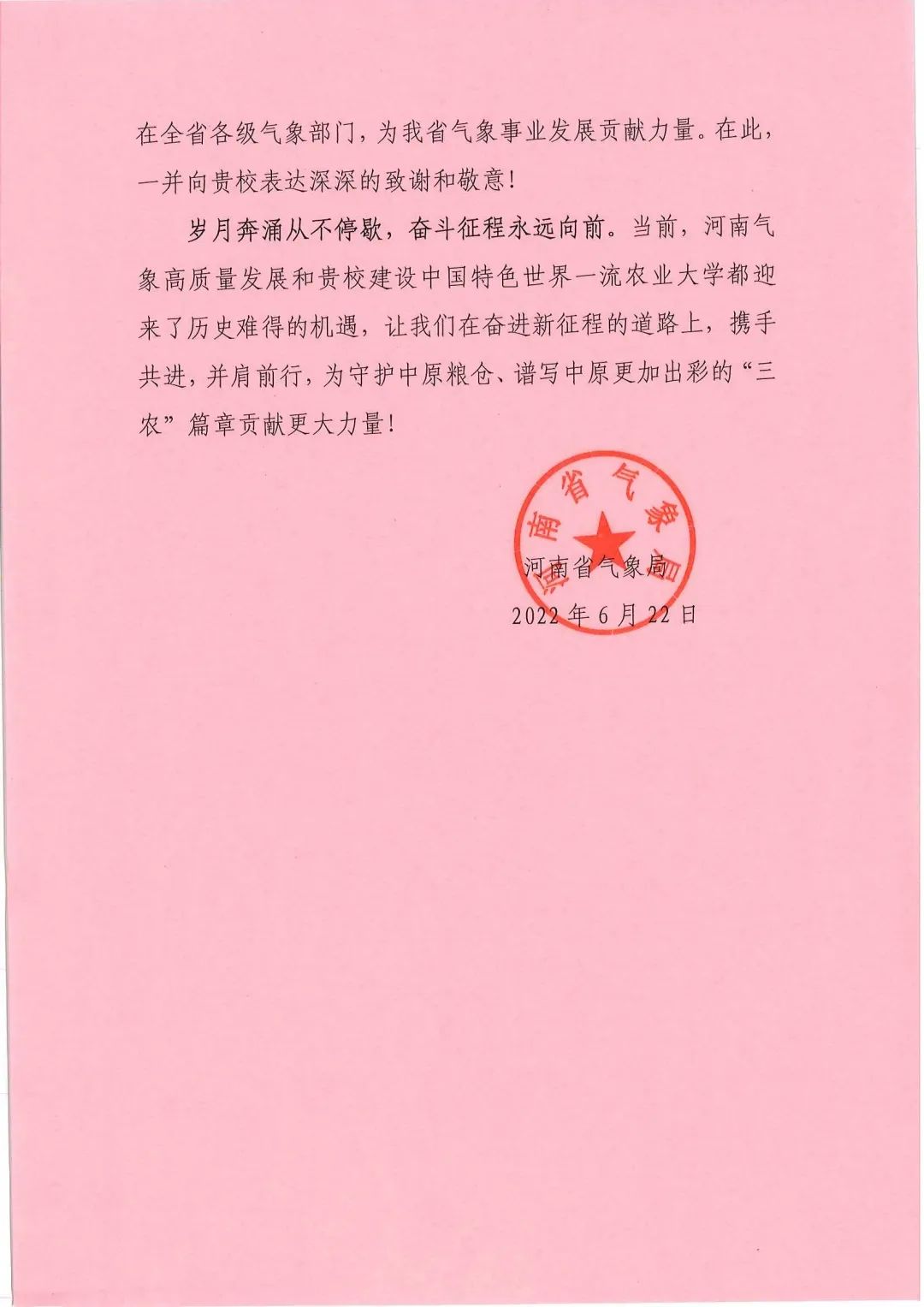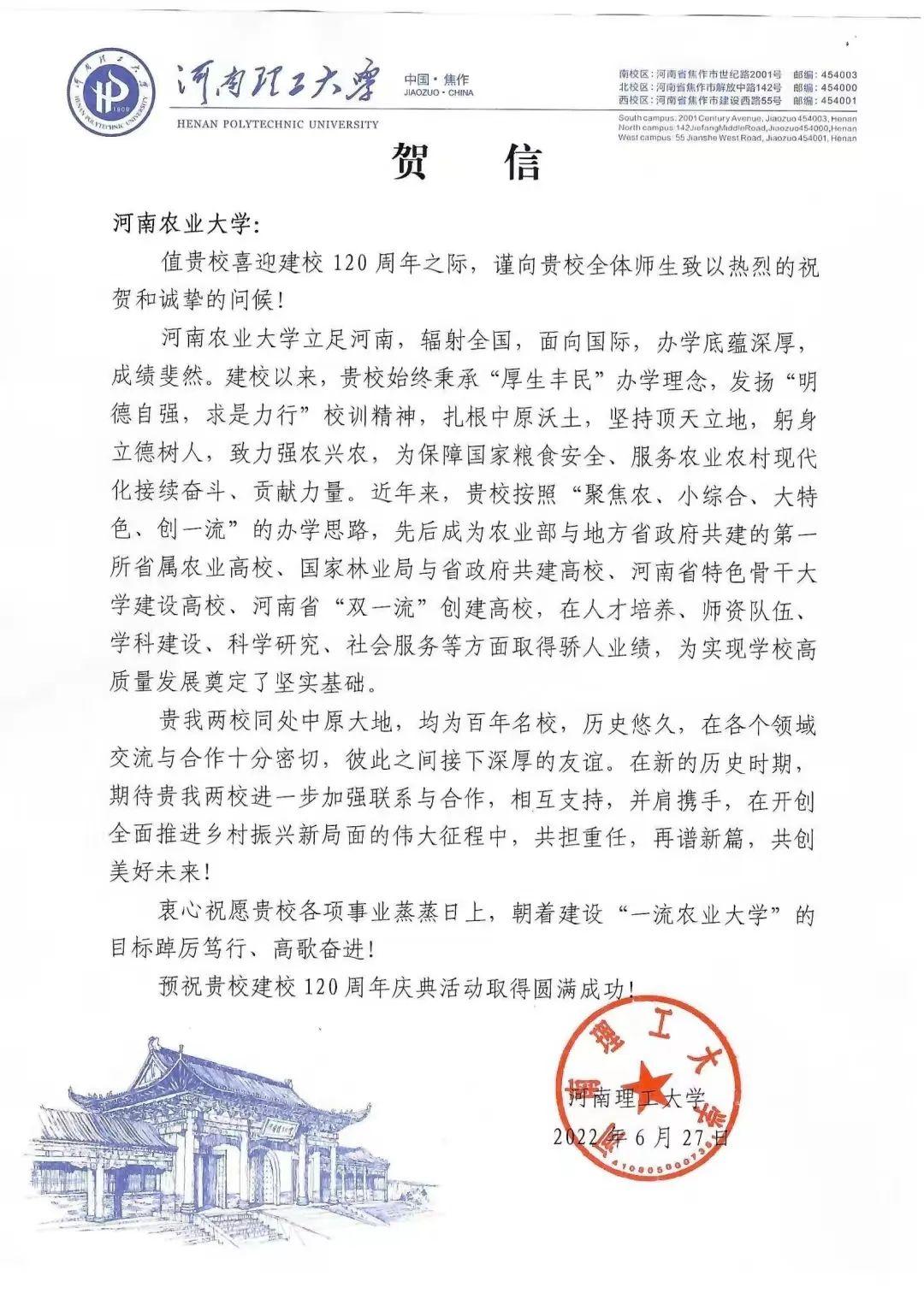 二十六、河南科技大学 贺信