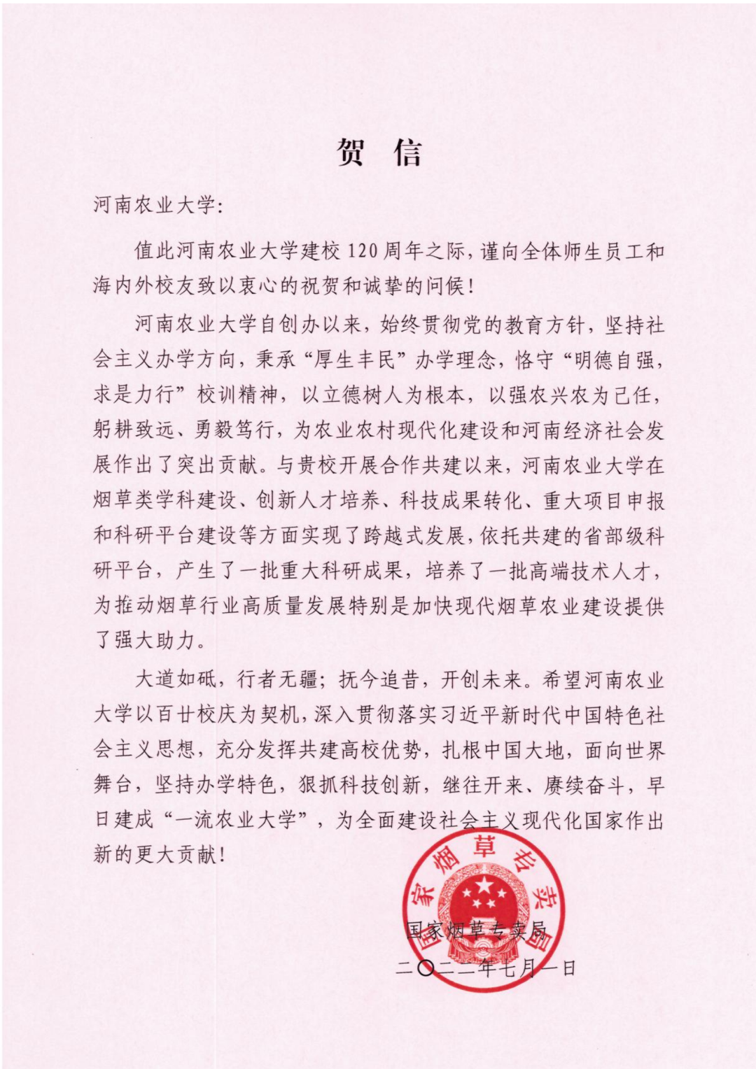 一、国家烟草局 贺信