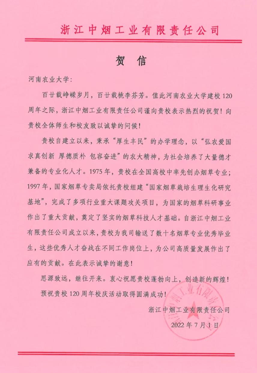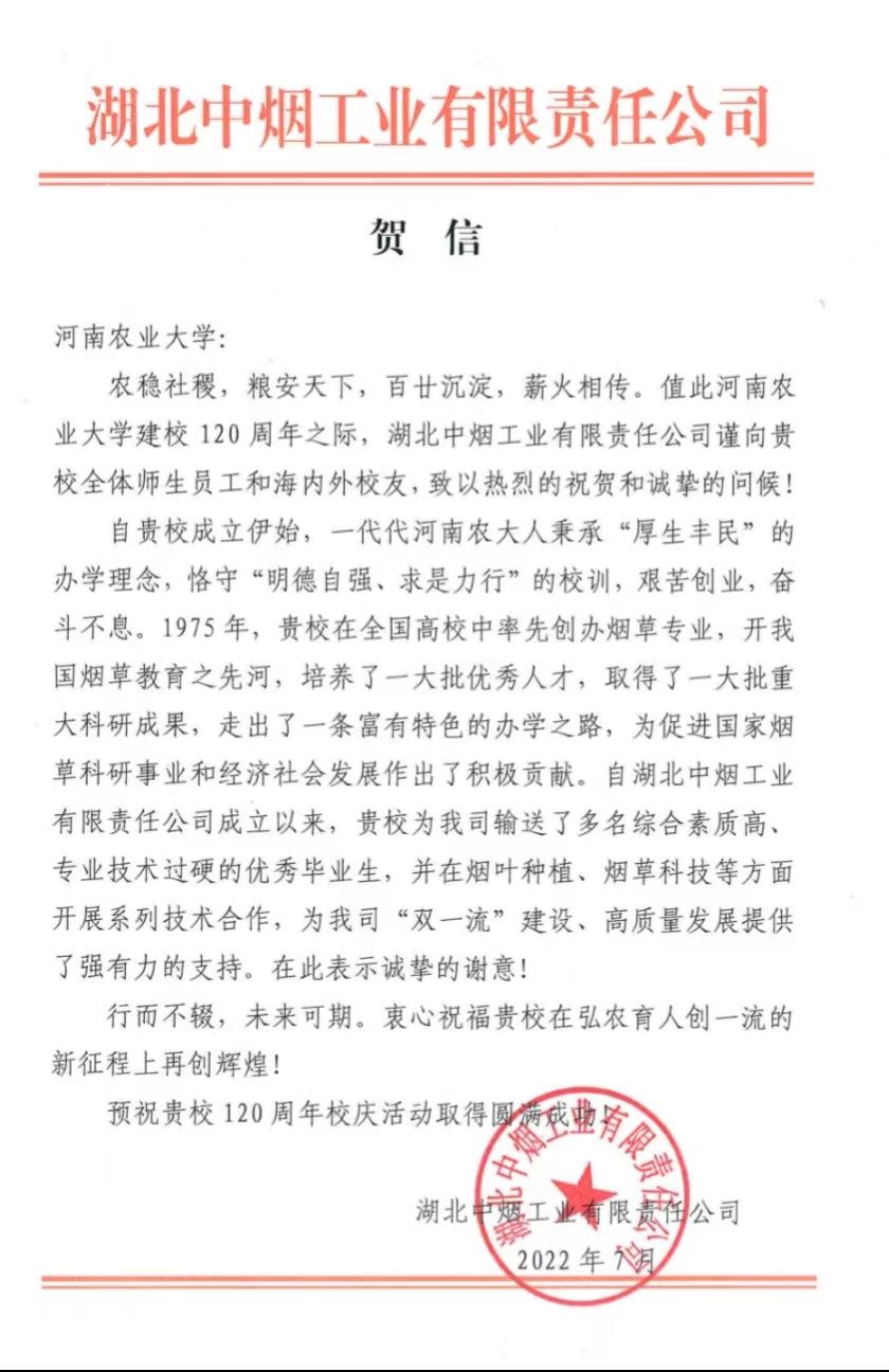 二、广东中烟 贺信