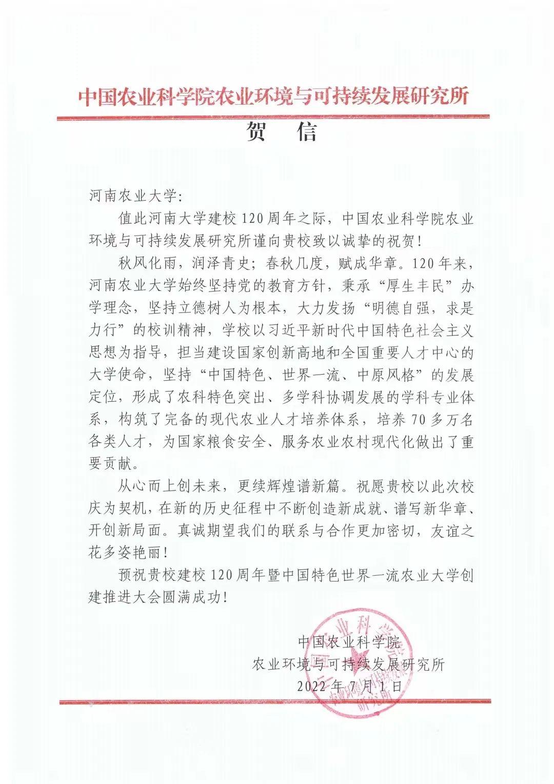九、吉林农业大学 贺信