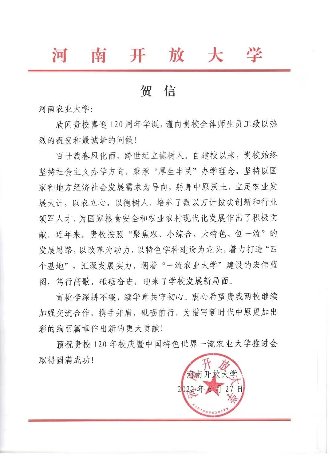 十六、河南开放大学 贺信