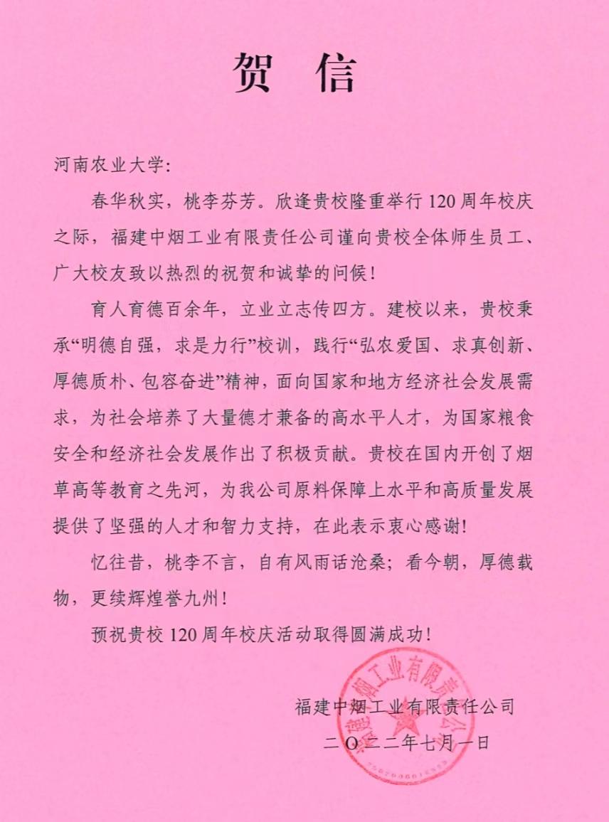 二十六、福建农林大学 贺信