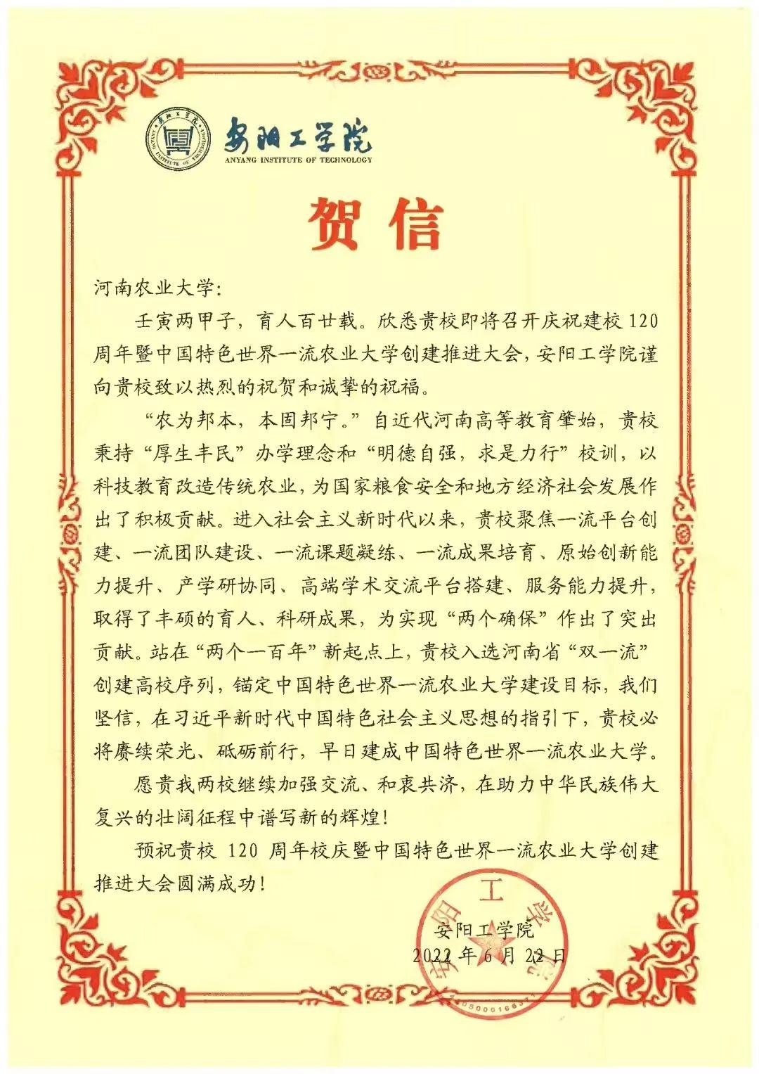 八、安阳工学院 贺信