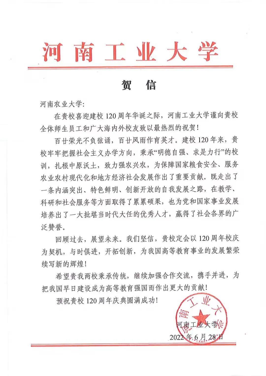十三、河南工业大学 贺信