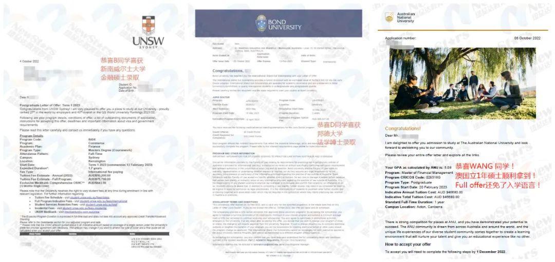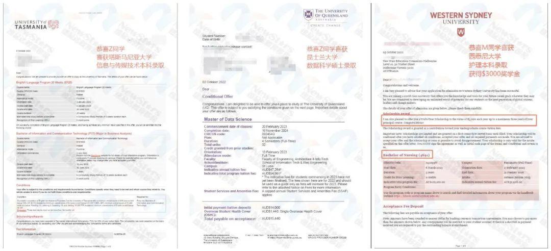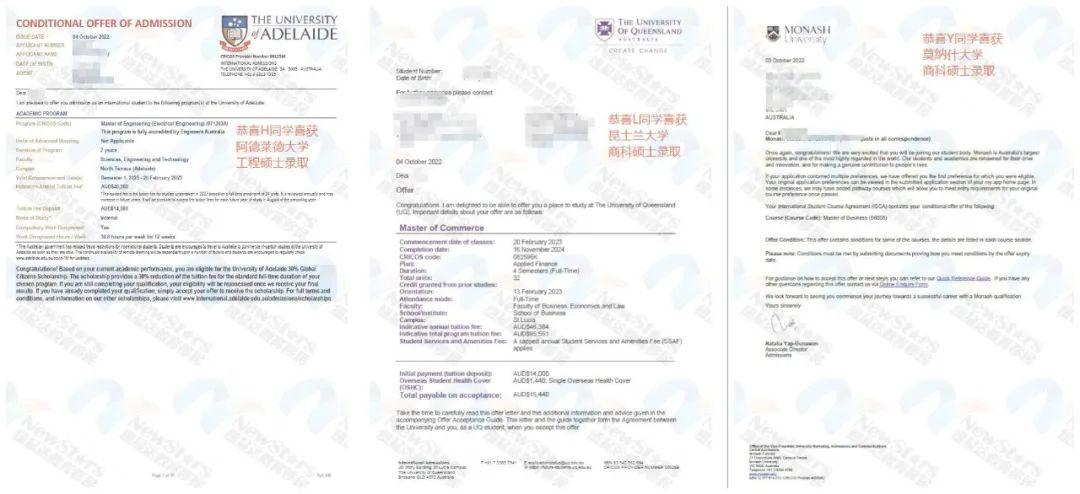 我们来看看本次收到的来自澳洲各地高校的录取通知书!