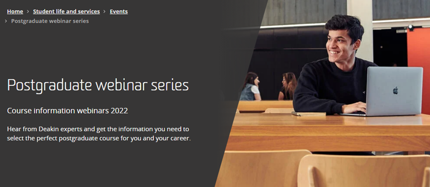 Deakin将在10月举行针对硕士在读学生就业方向和引导的信息研讨会,旨在帮助即将毕业的研究生提供清晰的职业导向。研讨会涵盖 医学、运动管理(deakin的王牌专业!)、工商管理、商科、传媒、建筑、教育等多个领域,研讨会从10月5号一直持续到月底。