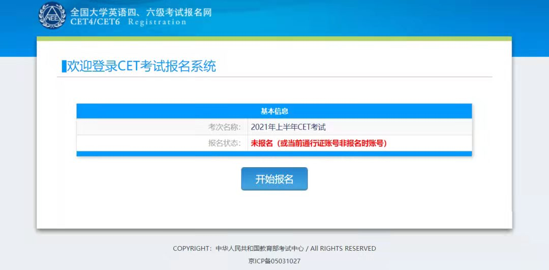 1.登录全国大学英语四、六级考试(CET)报名网址http://cet-bm.neea.edu.cn,点击进入报名。