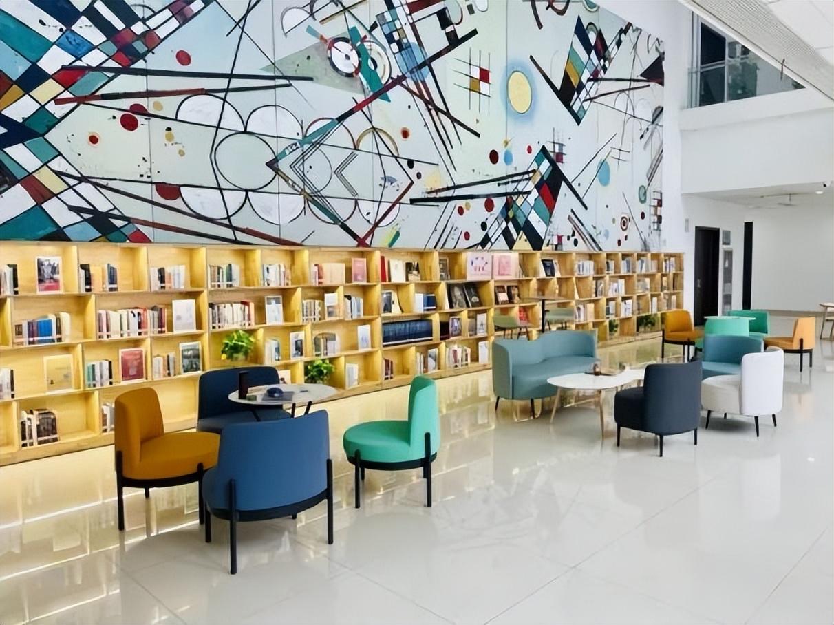 长安校区图书馆7层的“思维广角”空间,书架上陈列着艺术、哲学类书籍,墙上抽象的艺术画作与色彩丰富的组合沙发、桌椅相映成趣,为读者打造了不拘泥于传统图书馆严肃氛围的新式文化空间。区域内,舒适的沙发、桌椅可供读者在此阅读、讨论,还有丰富多彩的文化活动在这里上演。