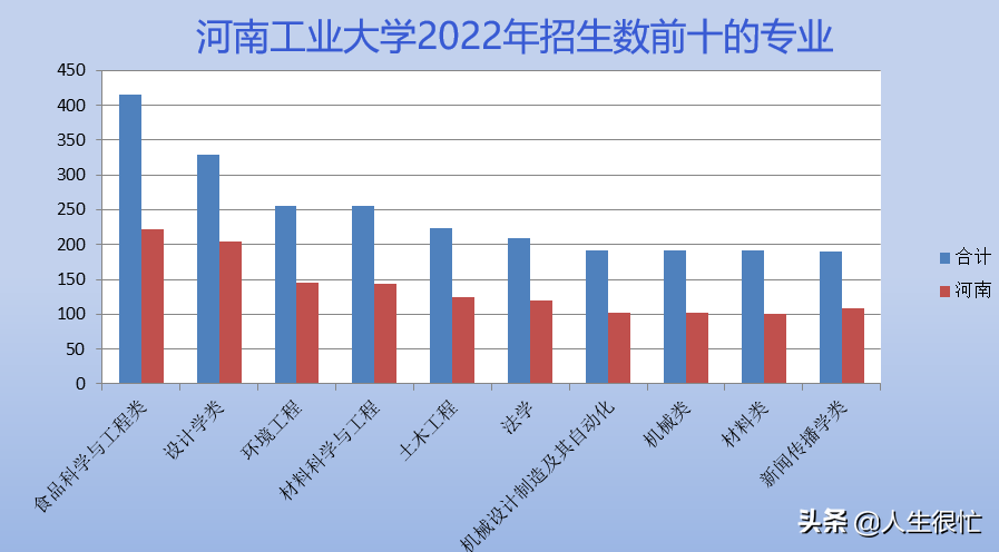 食品科学与工程类——计划招生416人,在河南招生222人。不论招生总数,还是省内招生数,均为第一。