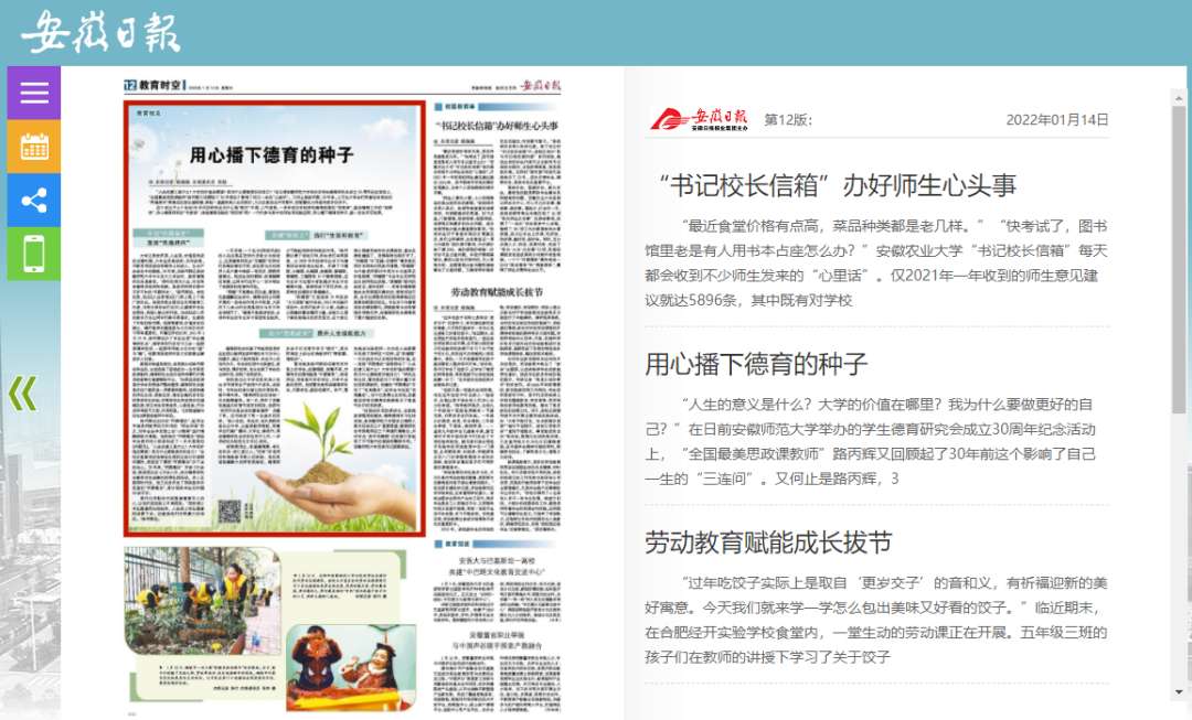 “站稳站好思政课讲台、全面推进课程思政建设、德育浸润学习生活实践,是安徽师范大学落实立德树人根本任务的三个重要渠道,德育研究会有效地将这三个渠道打通融合,并对学生‘拔节孕穗期’的思想引导起到了不可替代的栽培和雕琢作用。”安徽师范大学党委书记胡朝荣说。