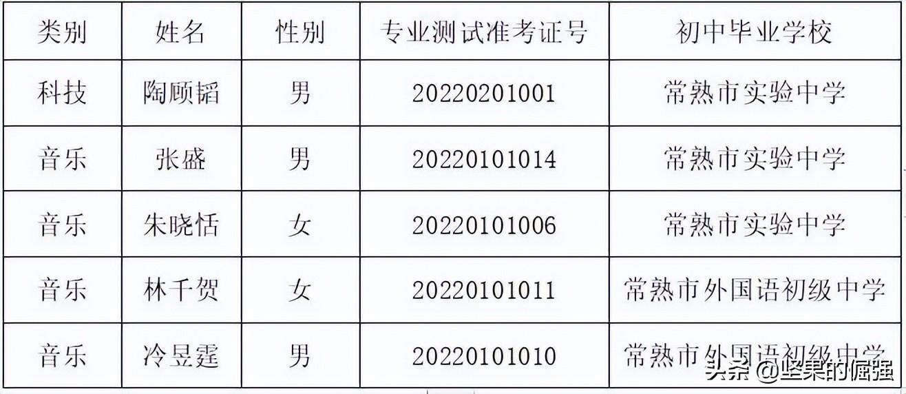2022年,只有省中和市中可以招收特长生。今年省中招生了5名,名单如下: