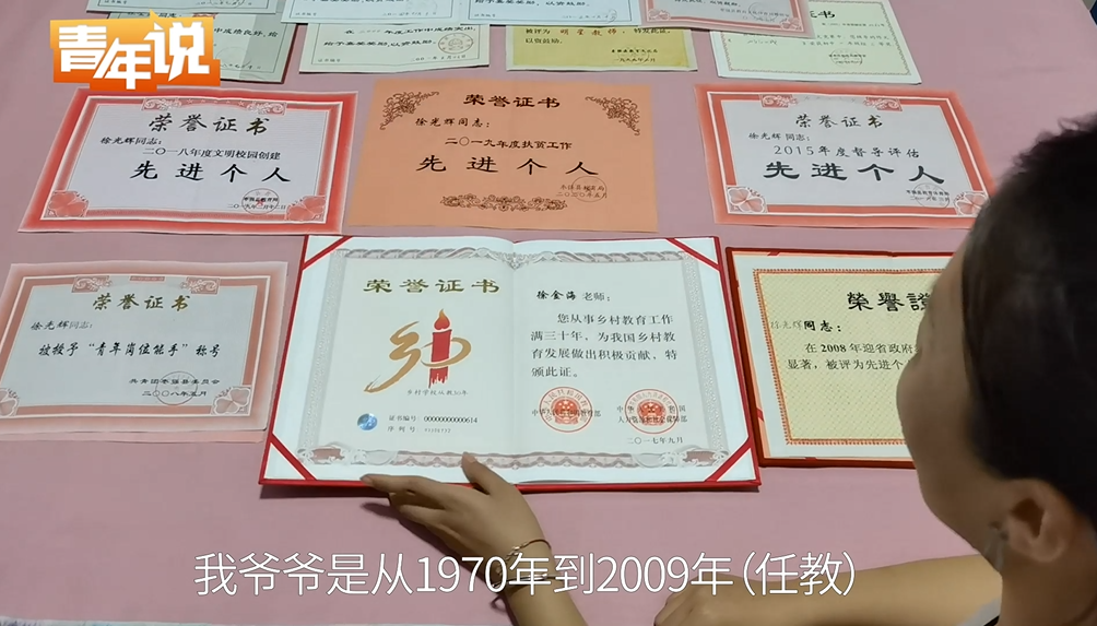 徐霖逸的爷爷徐金海,1970年参加工作,任教于王均中心小学,现在退休了,教龄39年。
