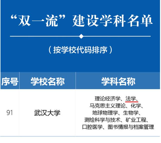 你说武汉大学法学能不厉害?武汉大学也把法学列为了世界一流建设学科。