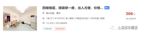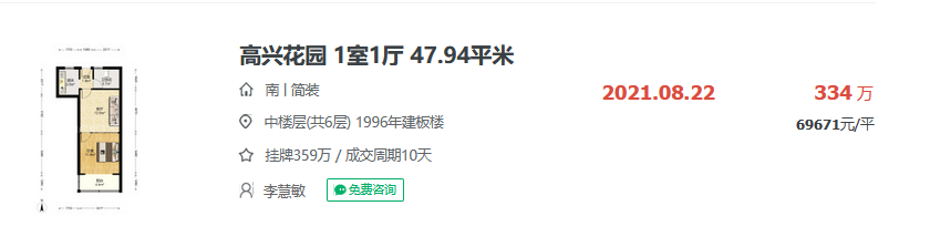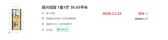 到今年8月,相同的1室1厅,总面积47㎡的房源,成交价从10万+/㎡跌落到6.9万+/㎡,11月,核验挂牌价为6.4万/㎡,高兴花园让人不高兴了。