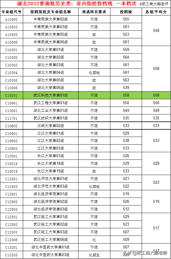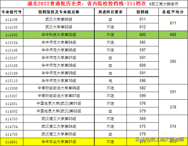 湖北2022普通批历史类:7所 211投档线比较稳定;