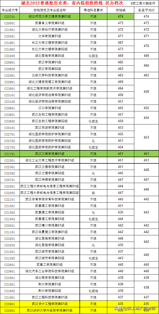 湖北2022普通批历史类:省内院校投档线 民办档次