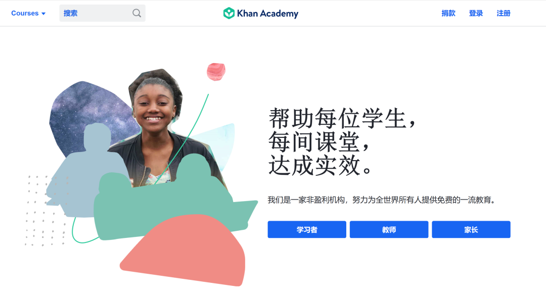 虽然这是一家在国外建立的学习网站,但页面提供简体中文,不至于完全看不懂。如果你想学习英文课程,却不知道从何入手,选择可汗学院就一定没错。