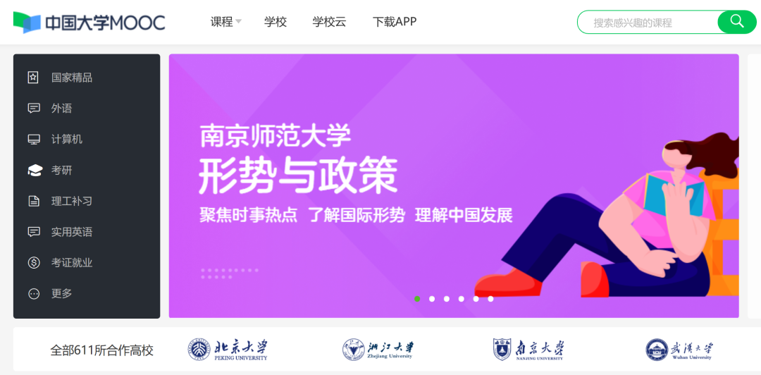 中国大学MOOC,提供了包括609所名校合作的千余门课程,质量那是没话说!