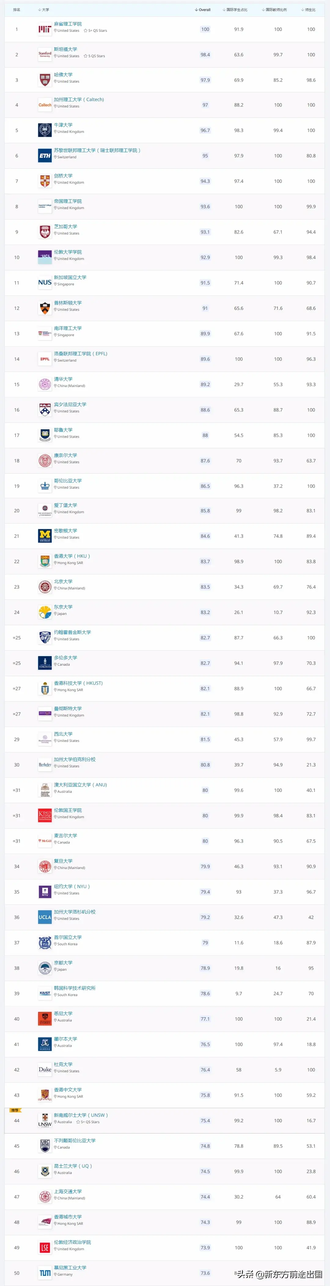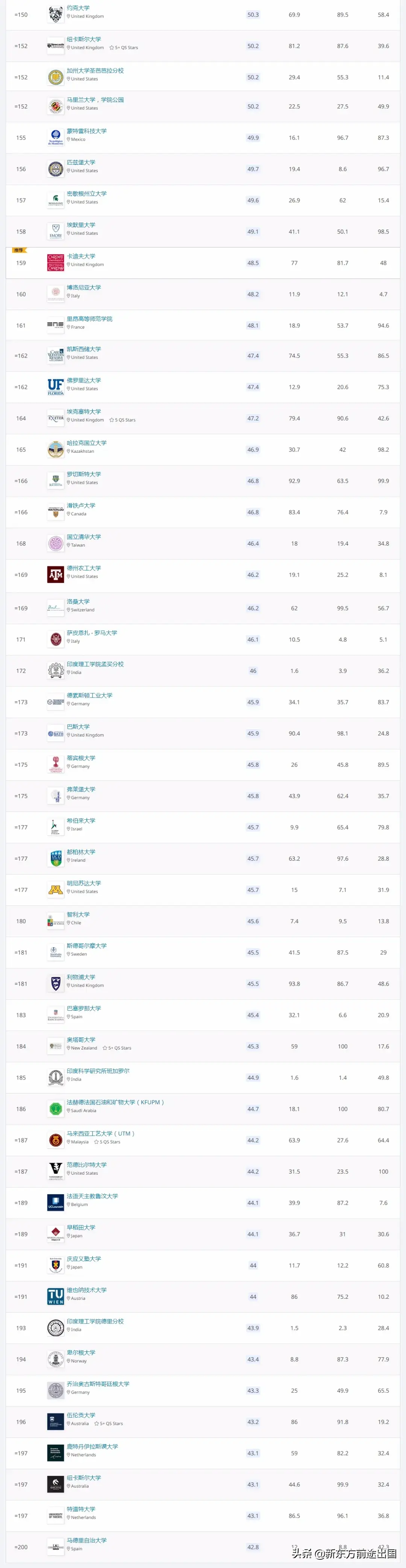 6. 国际学生比例5%:它衡量的是大学中非本国学生的比例,这也可以表明大学吸引世界各地人才的能力。